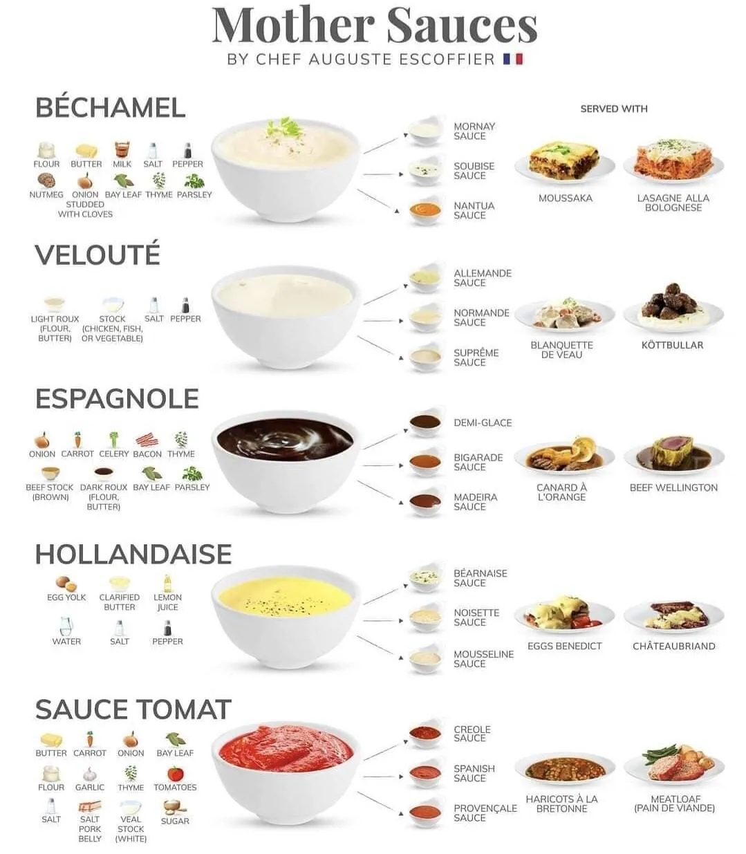 현재 서양 고급 요리의 근본 소스라는 베샤멜 (Bechamel), 벨루테 (Veloute), 에스파뇰 (Espagnole), 홀랜다이즈 (Hollandaise), 토마토 (Tomato)가 프랑스에서 정립.