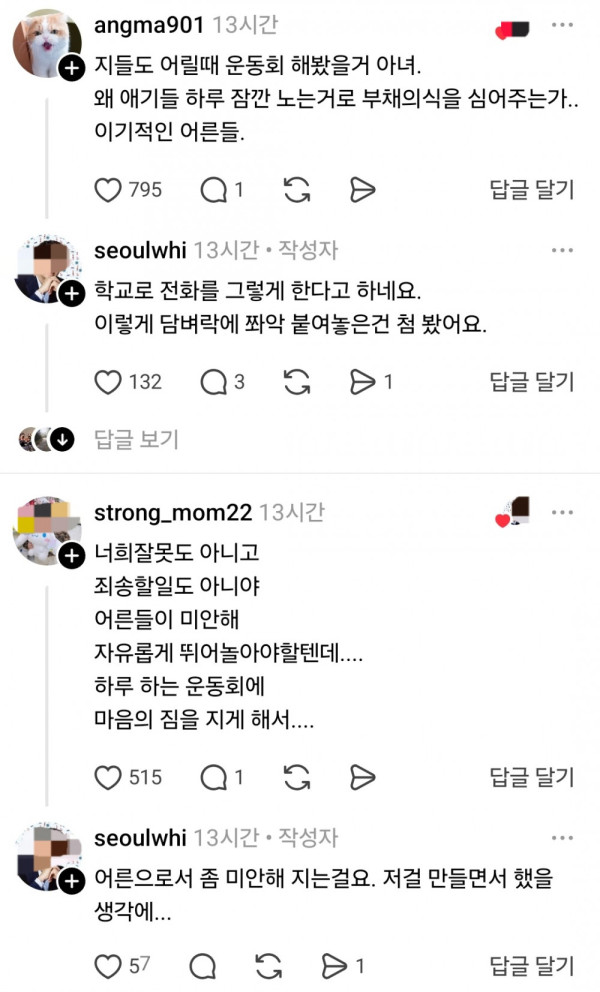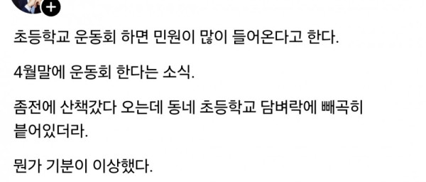 운동회 예정 초등학교 학생들이 직접 쓴 소음 양해문