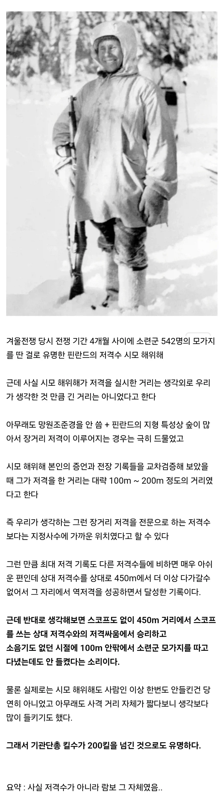 열람중 세계 최고의 저격수라는 시모 해위해의 진실 등급아이콘 레벨아이콘 커뮤관리자 16:31 56