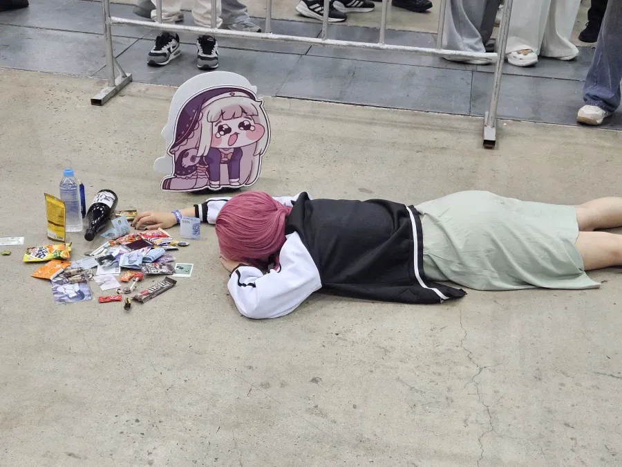 코스프레한 캐릭터가 캐릭터인지라 사람들이 컨셉인줄 알고 옆에 같이 누워서 기념샷 잔뜩 찍고 가네 ㅋㅋㅋㅋ 얼탱