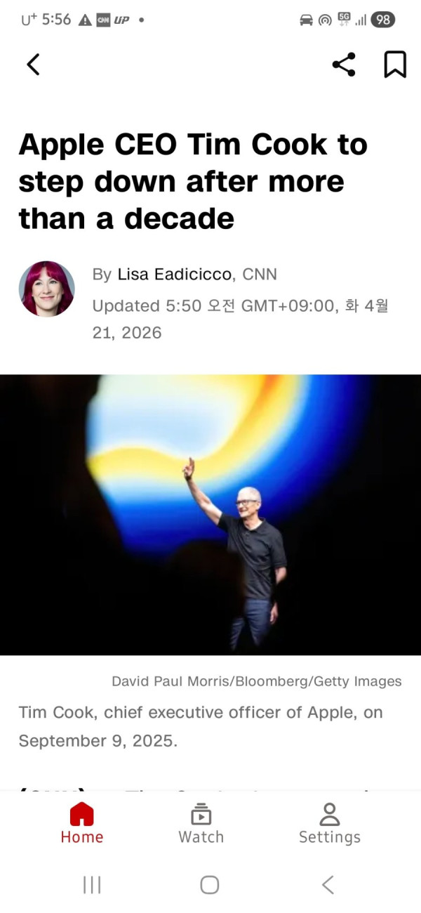 애플 팀쿡이 드뎌 물러나는군요