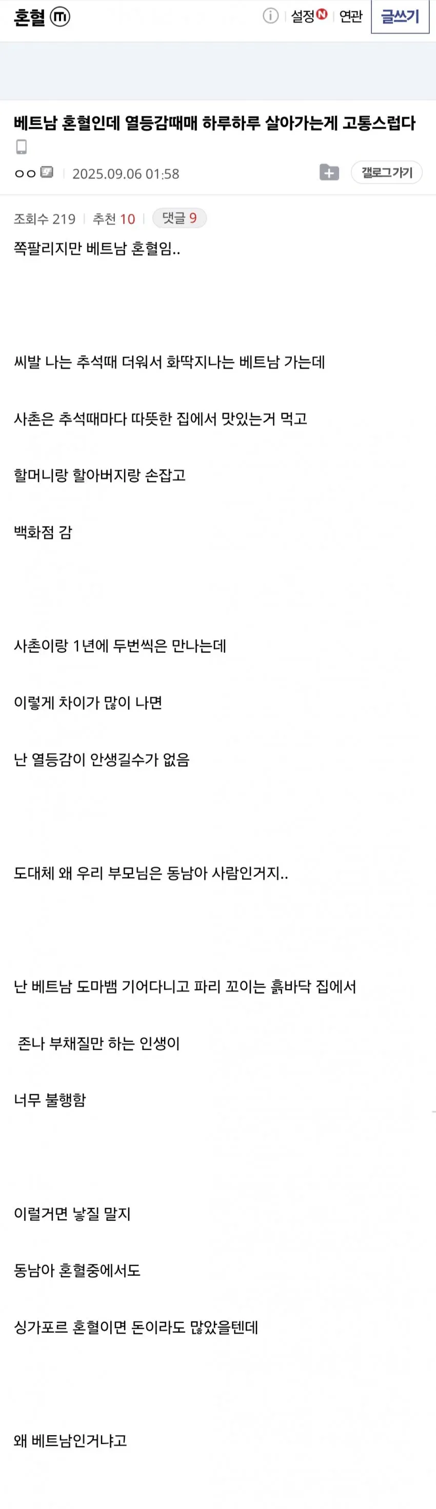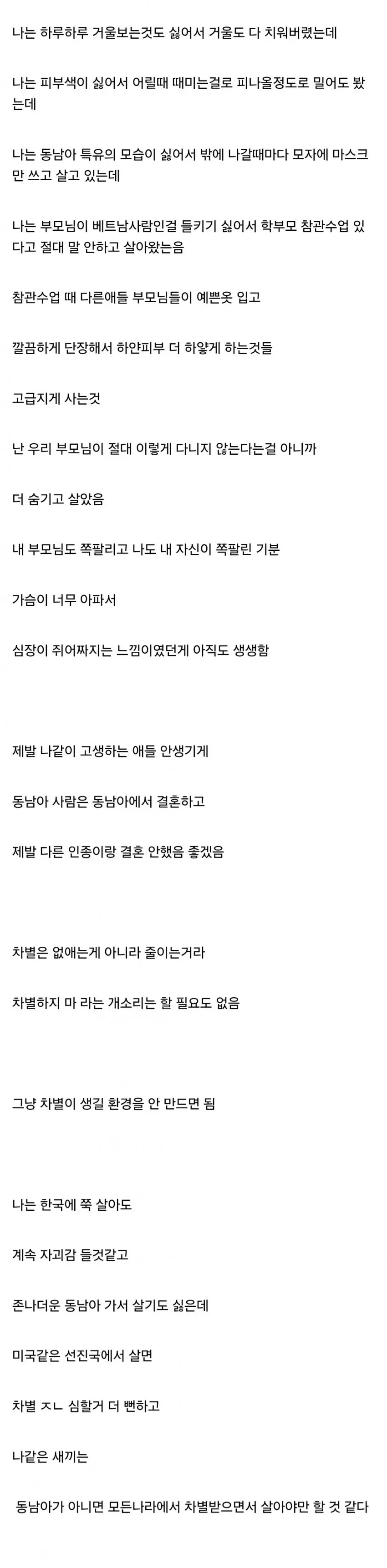 베트남 혼혈이라서 살아가는게 고통스럽다는 디시인