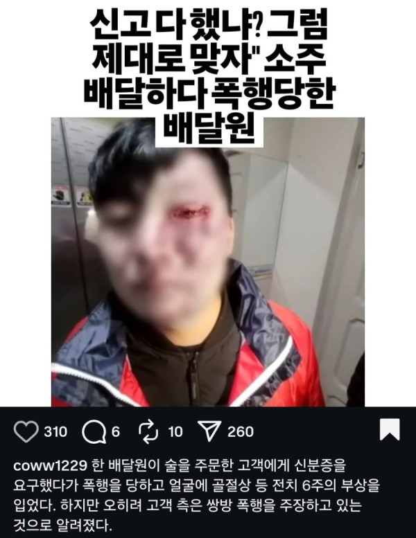 혐주의) 손님에게 쌍방폭행당한 배달기사