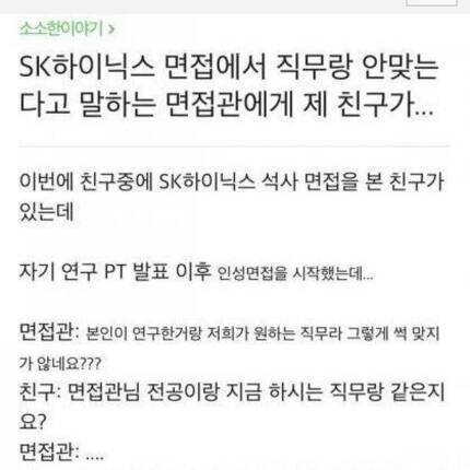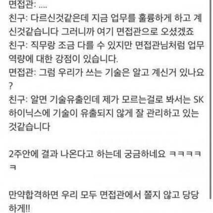 패기가 넘치는 SK하이닉스 면접본 사람 썰
