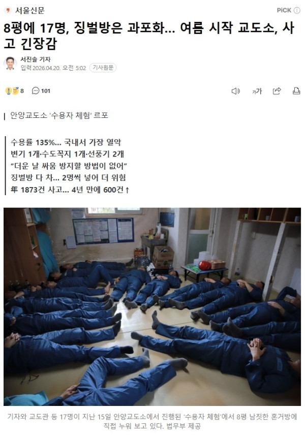 8평에 17명, 징벌방은 과포화… 여름 시작 교도소, 사고 긴장감 | 서울신문
