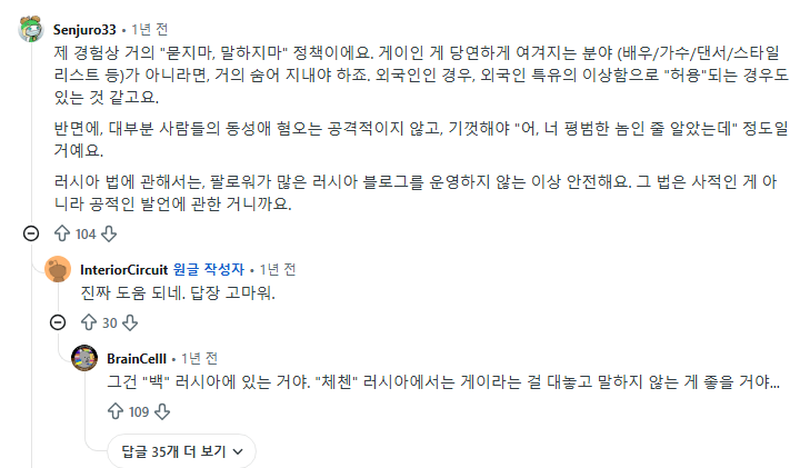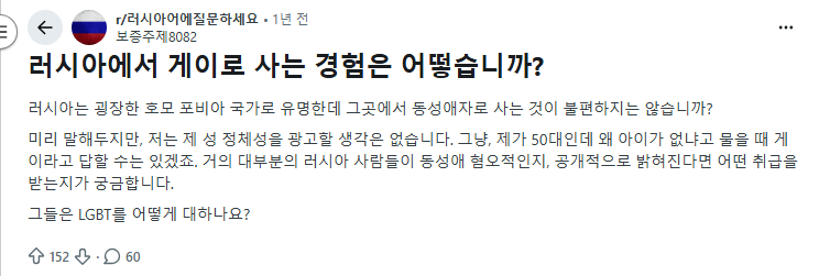 Q : 러시아에서 게이로 사는거 괜찮음?