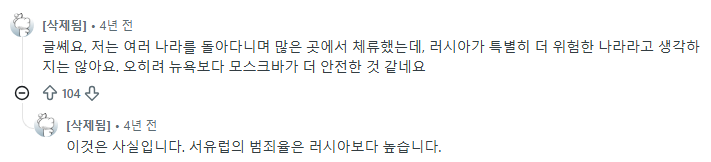 A1 : ㄴㄴ 모스크바가 뉴욕보다 더 안전함