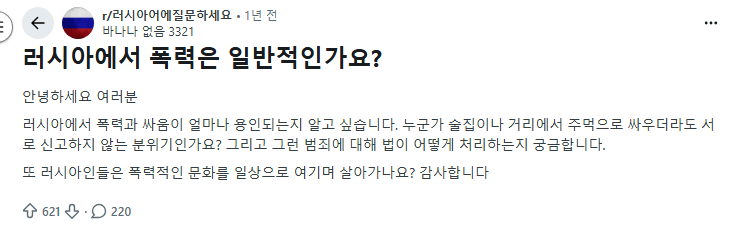 "러시아 사회는 정말로 폭력적인가요?"