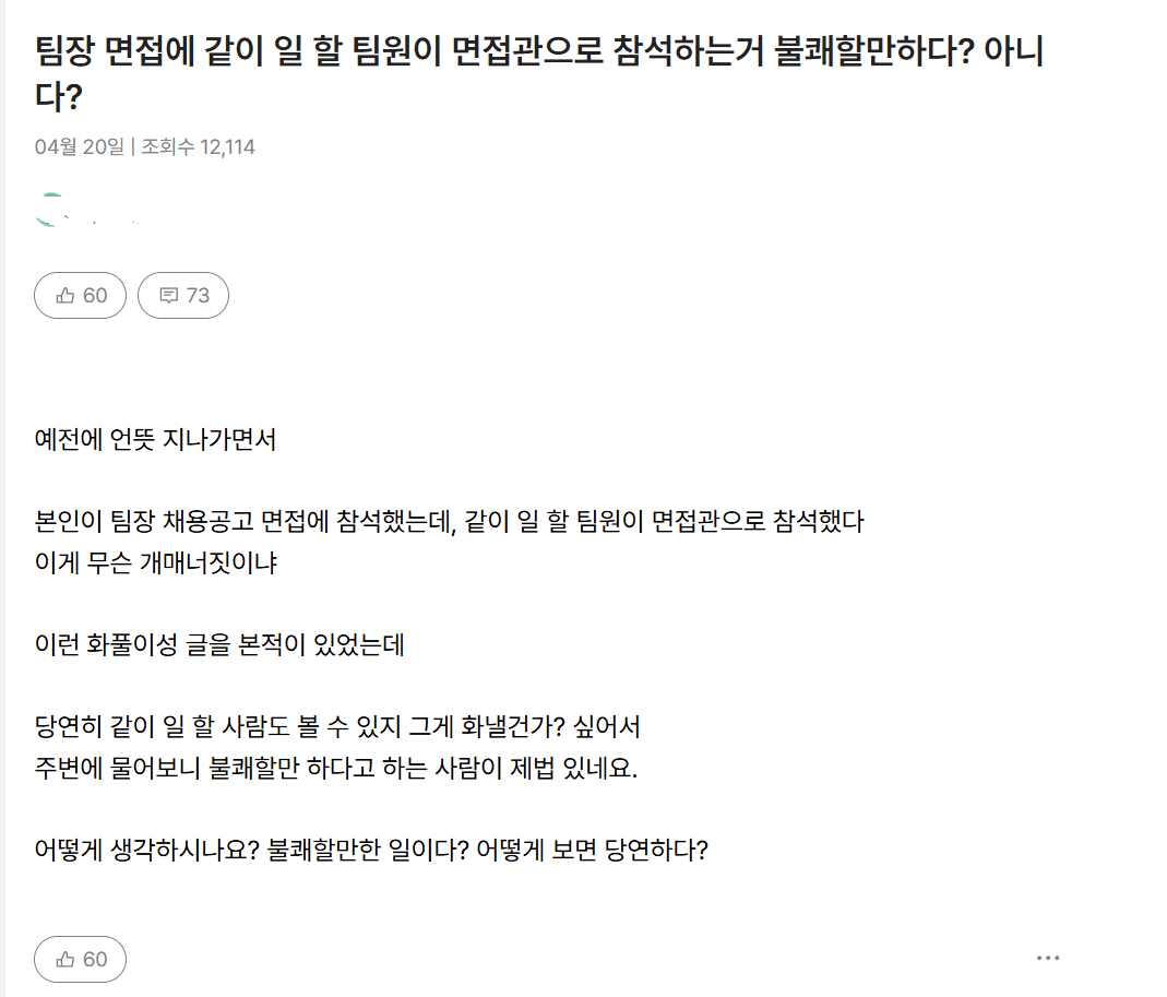 생각보다 불쾌하다, 괜찮다 갈리는 면접 방식