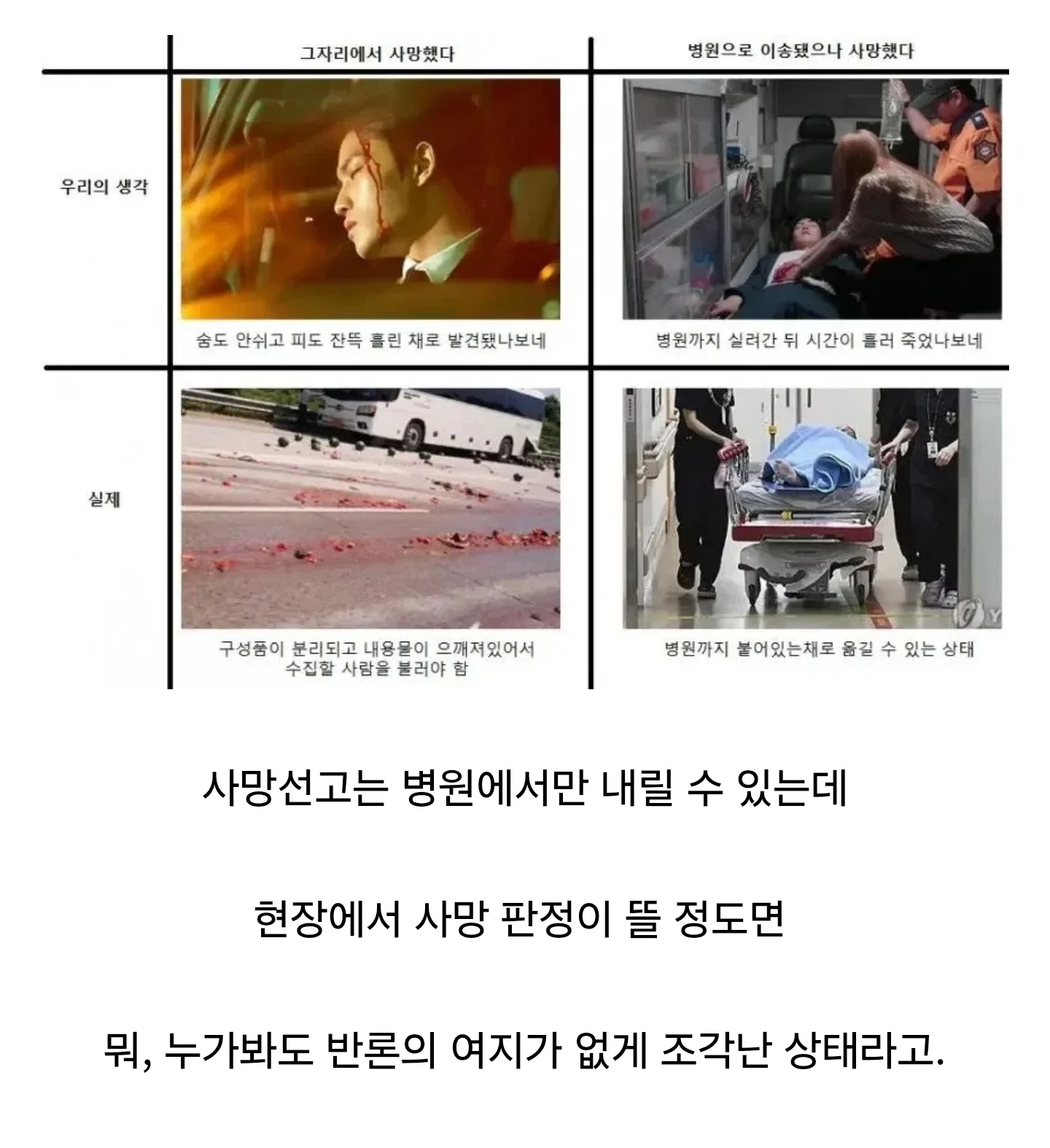 현장 사망과 병원에서 사망의 차이