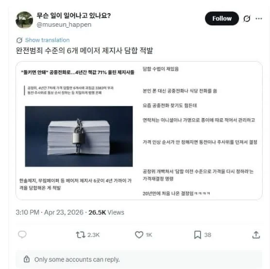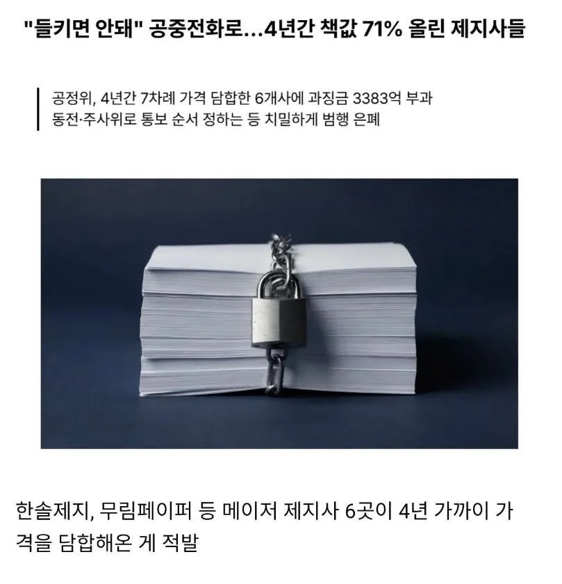 최근 적발된 제지사 담합 수법 ㄷㄷ
