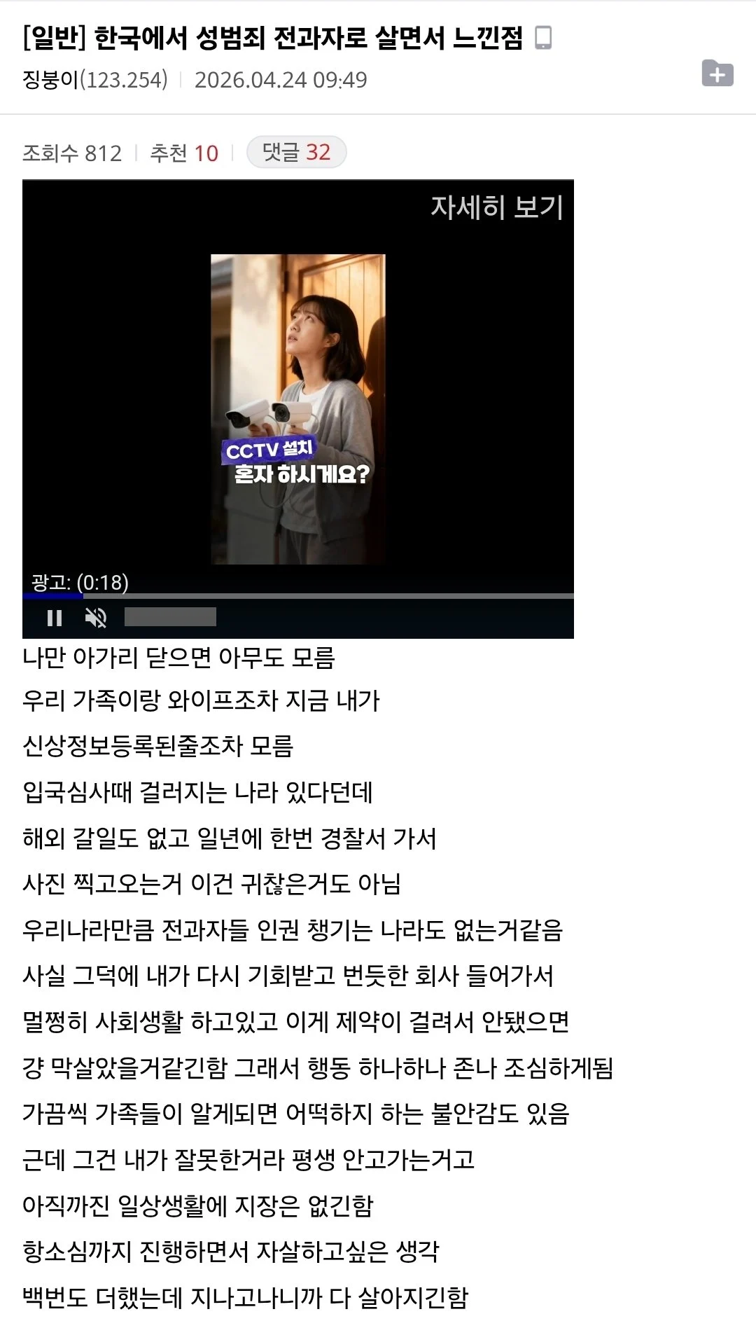 한국에서 성범죄 전과자로 살면서 느낀점