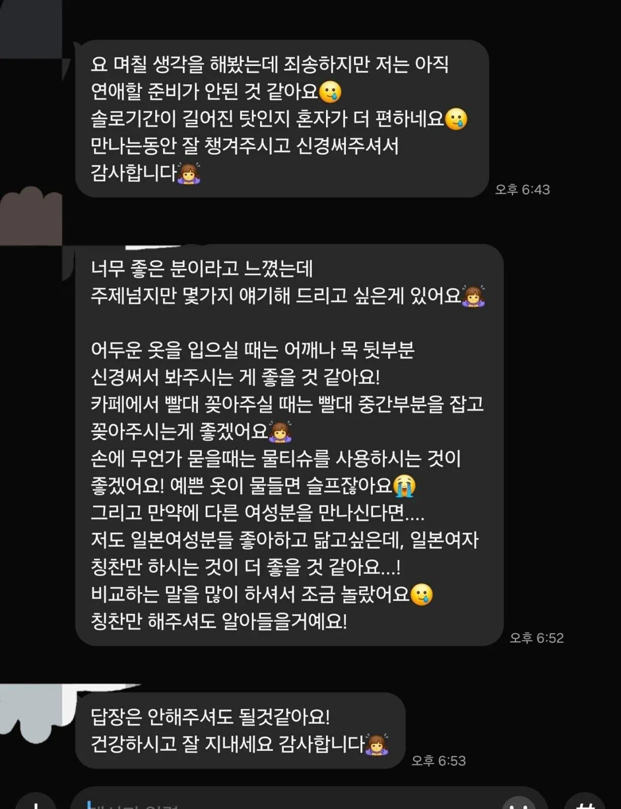 사려깊은 피드백과 정중한 거절 멘트로 마무리해준