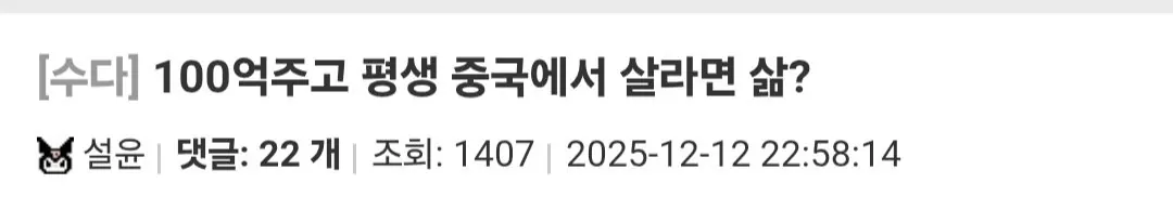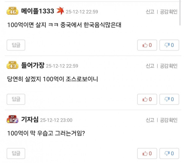 100억 받고 평생 중국에서 살 수 있어?