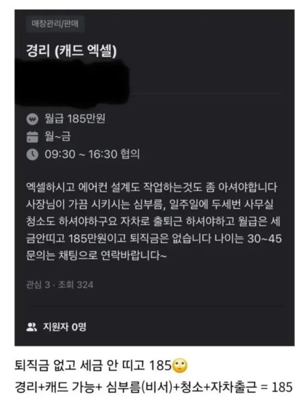 당근에 올라온 월급 185만원짜리 경리 업무 수준