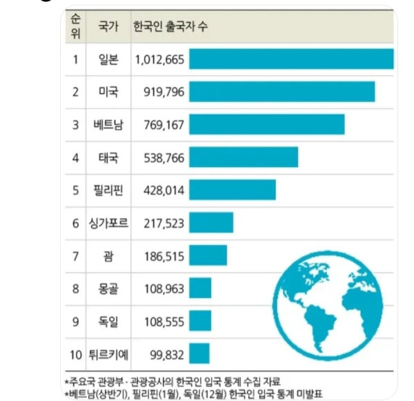 충격적인 한국인들의 입국 순위