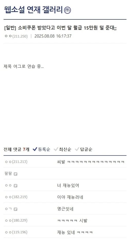 소비쿠폰 받았다고 이번 달 월급 15만원 덜 준대;;
