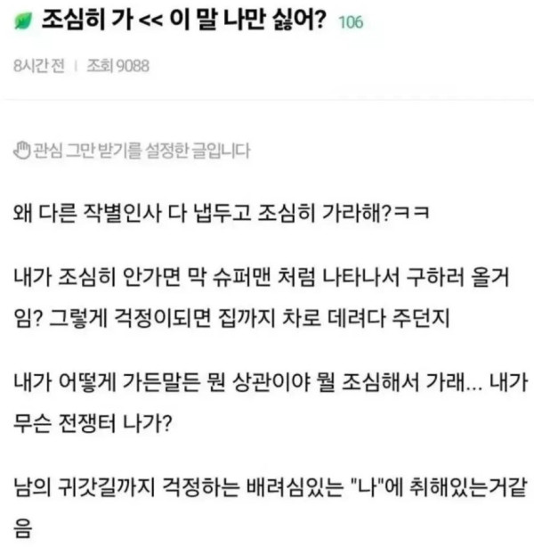 "조심히 가" <- 이 말 나만 싫어?