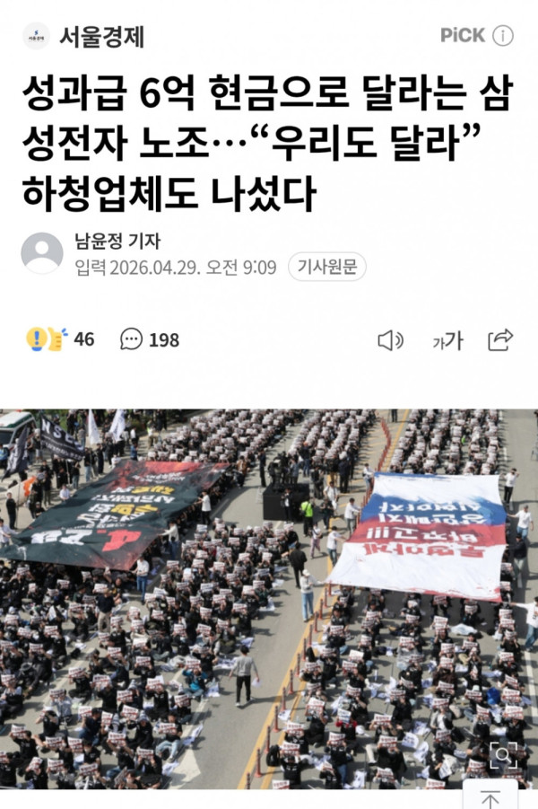 성과급 6억 현금으로 달라는 삼성전자 노조…“우리도 달라” 하청업체도 나섰