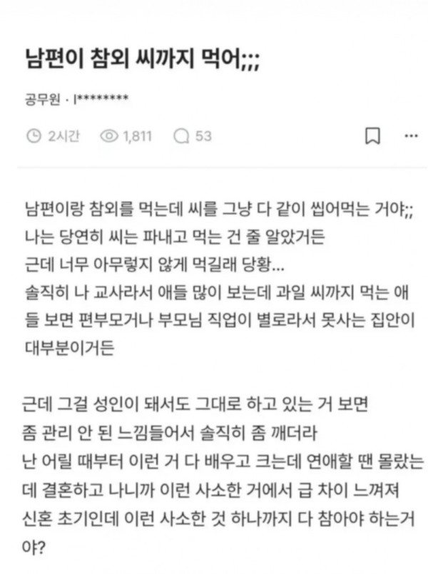 남편이 참외씨까지 먹어;;