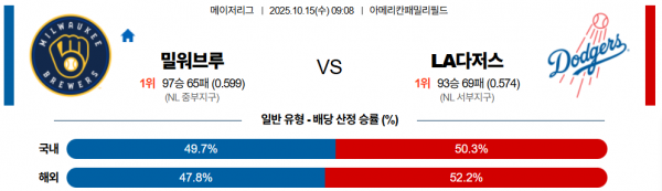 10월 15일 MLB 밀워브루 vs LA다저스