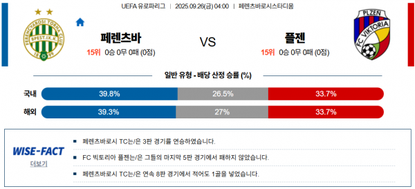 따라서 홈에서 경기 주도권을 확실히 잡는 페렌츠바로스 쪽으로 결론이 모인다.