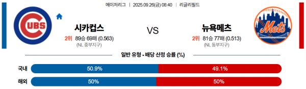 9월 26일 MLB 시카컵스 vs 뉴욕메츠