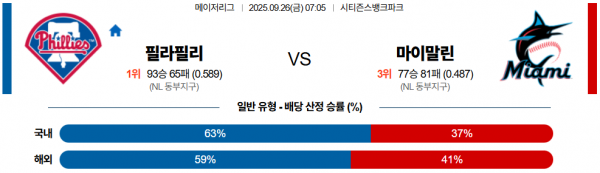 1차전과 2차전의 차이라면 역시 타격과 불펜이었다. 엄청난 파워를 보여준 필라델피아 타선이라면 정크 상대로도 승부가 될듯. 뷸러의 투구는 차라리 NL형이고 한번 가라앉은 마이애미의 타선이 쉽게 올라오긴 어렵다. 필라델피아의 불펜 변수가 있긴 하지만 이는 마이애미도 마찬가지다. 전력에서 앞선 필라델피아 필리스가 승리를 가져갈 것이다.