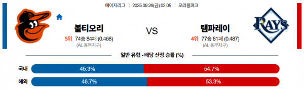 9월 26일 MLB 볼티오리 vs 탬파레이