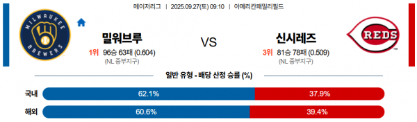 9월 27일 MLB 밀워브루 vs 신시레즈