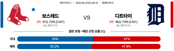 9월 27일 MLB 보스레드 vs 디트타이