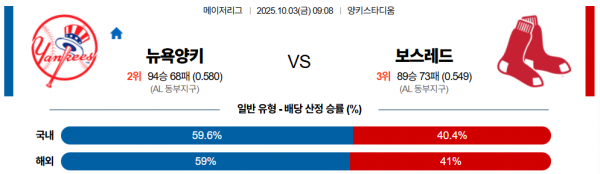 10월 3일 MLB 뉴욕양키 vs 보스레드