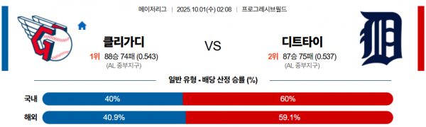 10월 1일 MLB 클리가디 vs 디트타이