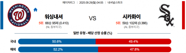 열람중 국내야구분석 9월 29일 MLB 워싱내셔 vs 시카화이 등급아이콘 레벨아이콘 커뮤관리자 09.29 162