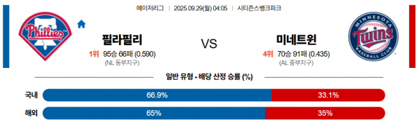 열람중 국내야구분석 9월 29일 MLB 필라필리 vs 미네트윈 등급아이콘 레벨아이콘 커뮤관리자 09.29 224