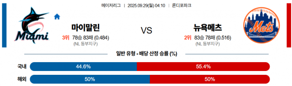 9월 29일 MLB 마이말린 vs 뉴욕메츠