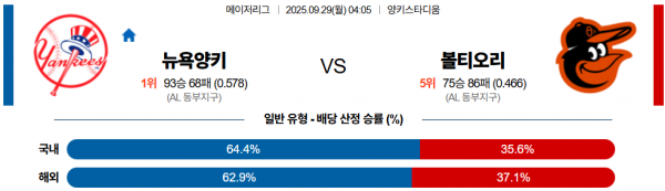 9월 29일 MLB 뉴욕양키 vs 볼티오리