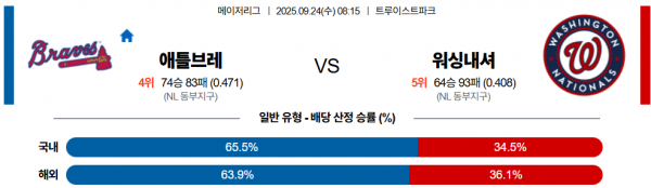9월 24일 MLB 애틀브레 vs 워싱내셔