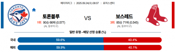 9월 24일 MLB 토론블루 vs 보스레드