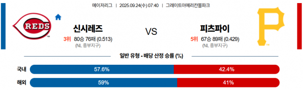 9월 24일 MLB 신시레즈 vs 피츠파이