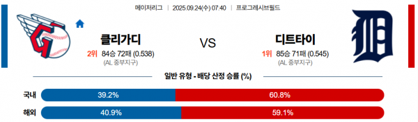 9797 국내야구분석 9월 26일 MLB 클리가디 vs 디트타이 등급아이콘 레벨아이콘 커뮤관리자 09.25 181