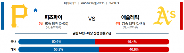 9월 22일 MLB 피츠파이 vs 애슬레틱
