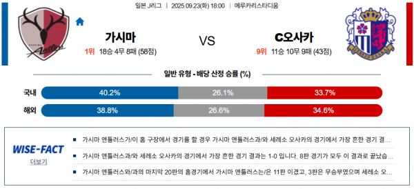 ✅ 홈의 이점과 압박 강도를 감안할 때 가시마가 승부를 지배할 가능성이 높다!