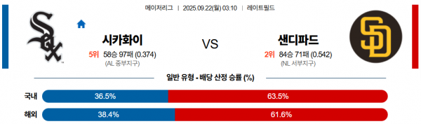 9735 국내야구분석 9월 24일 MLB 뉴욕양키 vs 시카화이 등급아이콘 레벨아이콘 커뮤관리자 09.23 240