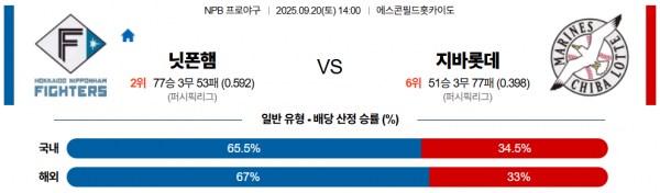 9월 20일 NPB 닛폰햄 vs 지바롯데