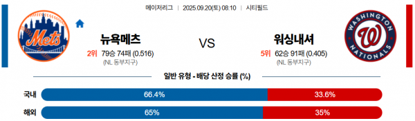 9월 20일 MLB 뉴욕메츠 vs 워싱내셔