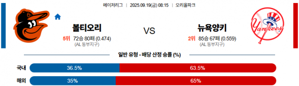 9월 19일 MLB 볼티오리 vs 뉴욕양키