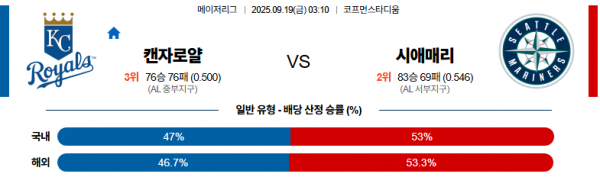 9월 19일 MLB 캔자로얄 vs 시애매리