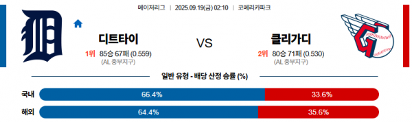 열람중 국내야구분석 9월 19일 MLB 디트타이 vs 클리가디 등급아이콘 레벨아이콘 커뮤관리자 09.18 221