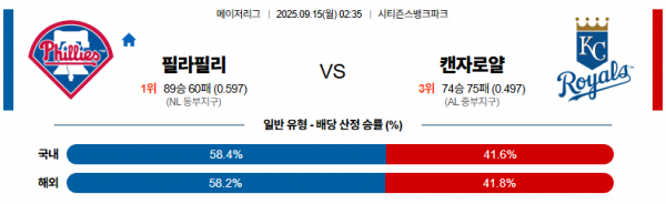 9월 15일 MLB 필라필리 vs 캔자로얄